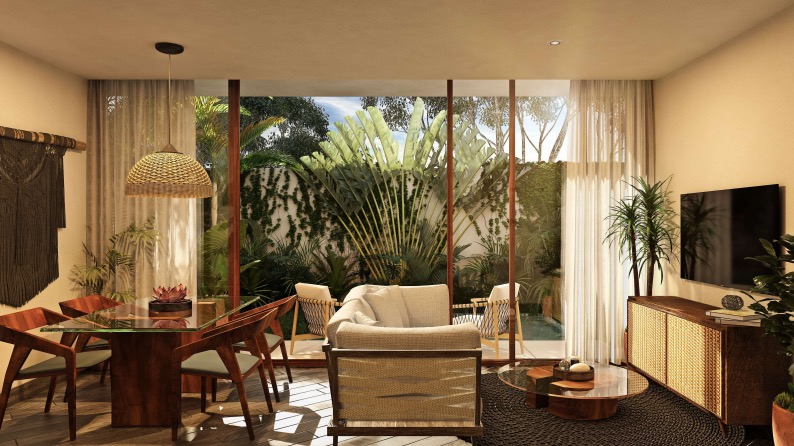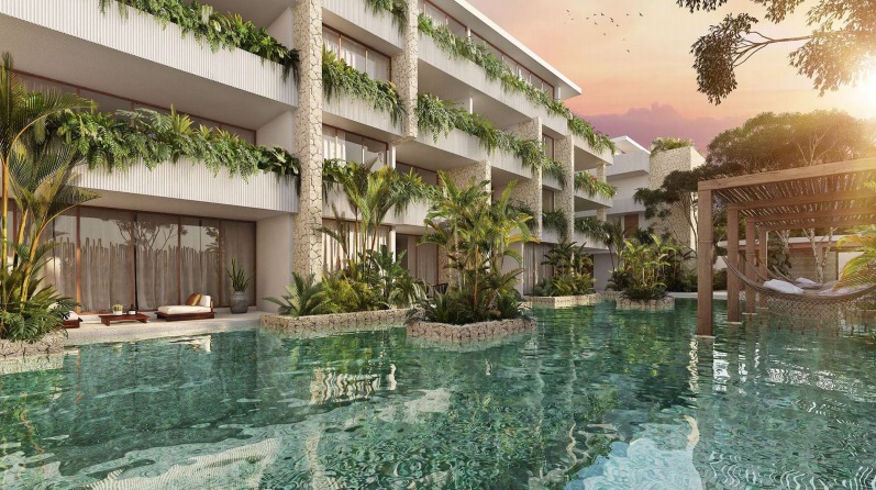 ENGLISH: More than a residential development, Omara is a community formed by 34 apartments, a place that invites rest and tranquility in an atmosphere where you can appreciate the privacy for which it was designed. The project was purposely created to have complete harmony with what Tulum represents; nature, quiet, placidity, joy, delight, freedom and calm. An environment that always welcomes and invites you to stay and enjoy living in paradise from the swing of a hammock.