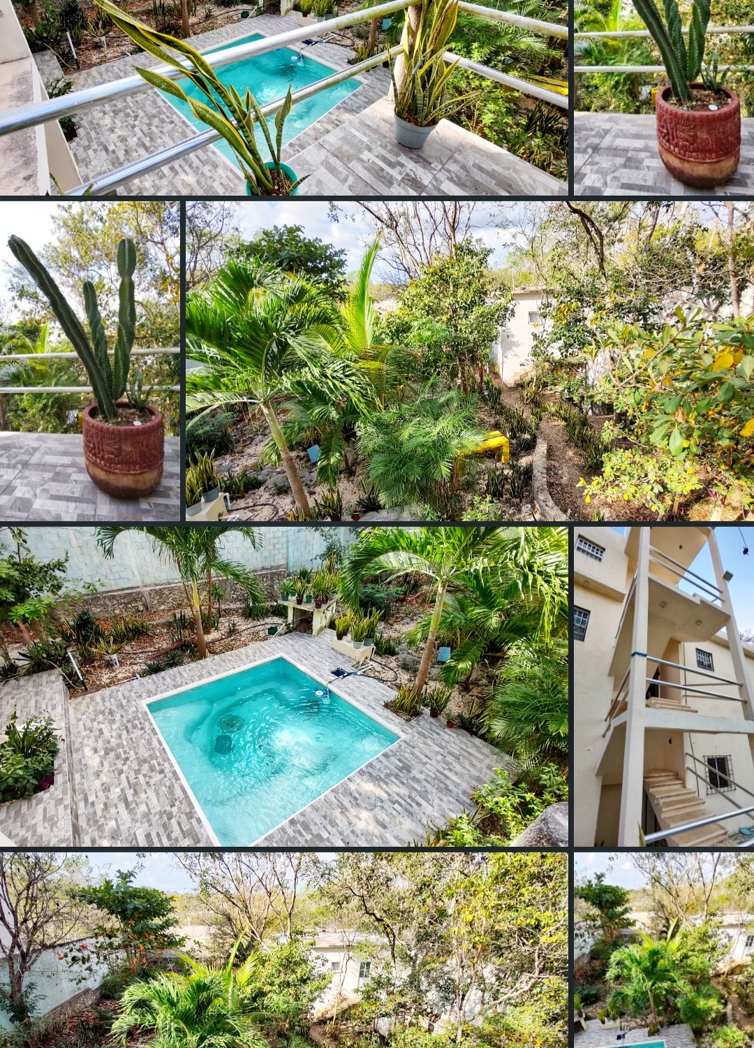 El edificio principal de la propiedad consta de dos pisos y dos casas independientes. La casa de la planta baja abarca 115 m² y cuenta con una amplia sala de estar con techos altos y una magnífica habitación que puede alojar dos camas king-size. Hay un baño en suite y un medio baño en la sala de estar. La sala de estar es fácilmente accesible desde la entrada principal y el garaje para dos autos, y conduce al exuberante jardín y la piscina tipo cenote en la parte trasera.